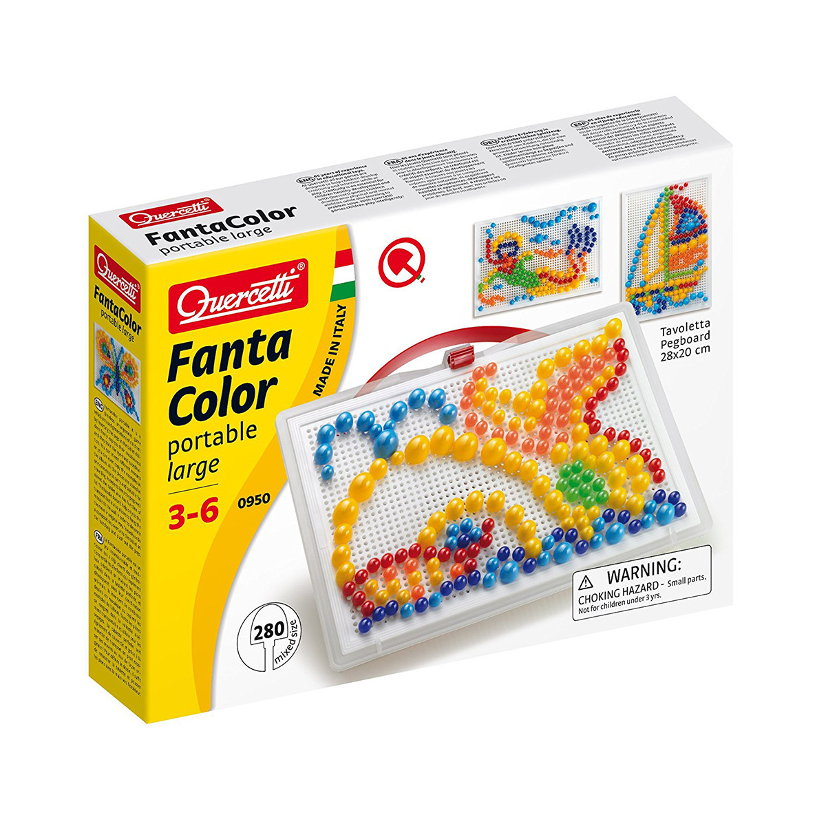 Розвиваючий набір ДЛЯ занять МОЗАЇКОЮ (10-15-20 мм фішки (280 шт.) + дошка 28х20, переносний) - найбільший набір з усіх мозаїк Quercetti ! Набір створений для занурення дитини в світ форм, кольорів й фантазій.